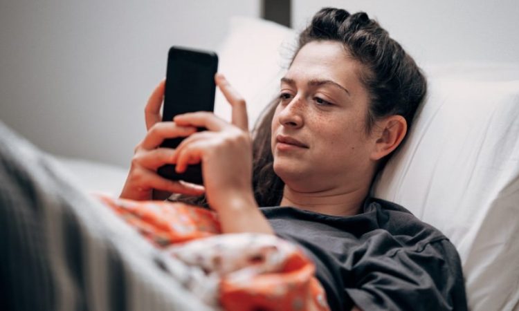 woman text messaging in the bed